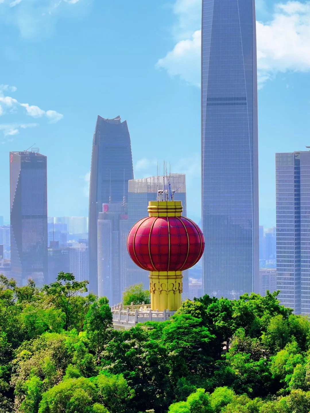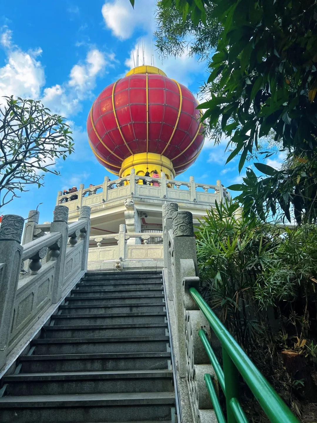 👉登上山顶,俯瞰东莞市区的美景,参观山顶的大灯笼。
