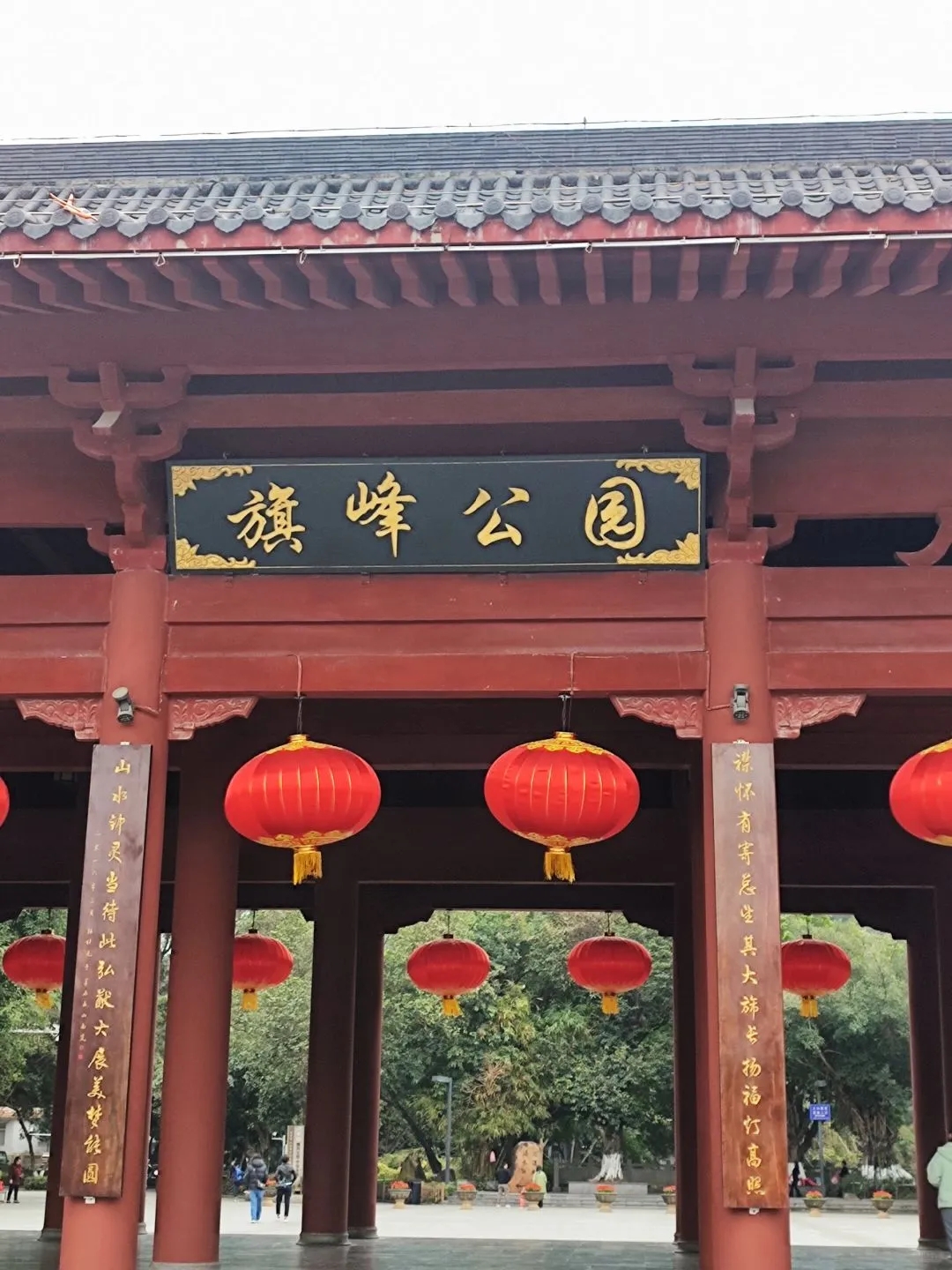 👉从旗峰公园正门进入,沿着大路前行,欣赏公园内的花草树木和景观建筑。