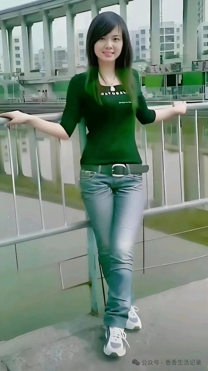 这是我 17 岁在广东东莞厚街镇国泰鞋厂旁边拍的,穿着充满千禧年风格的穿搭:上身是一件墨绿色中袖上衣,胸前有字母装饰,简约又带着青春活力;下身搭配浅蓝牛仔裤,用黑色皮带收腰,勾勒出利落的线条感;脚上是一双白灰配色的休闲运动鞋,舒适又时髦,整体装扮透着那个年代打工妹的朝气与对时尚的小追求,笑得眼睛都眯成缝。盯着照片看了半天,那些藏在时光里的日子,一下就涌到眼前了。